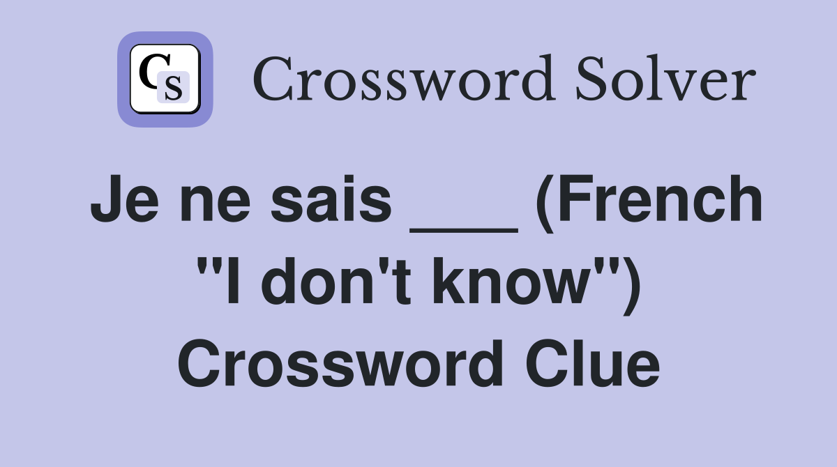 Je ne sais (French quot I don #39 t know quot ) Crossword Clue Answers