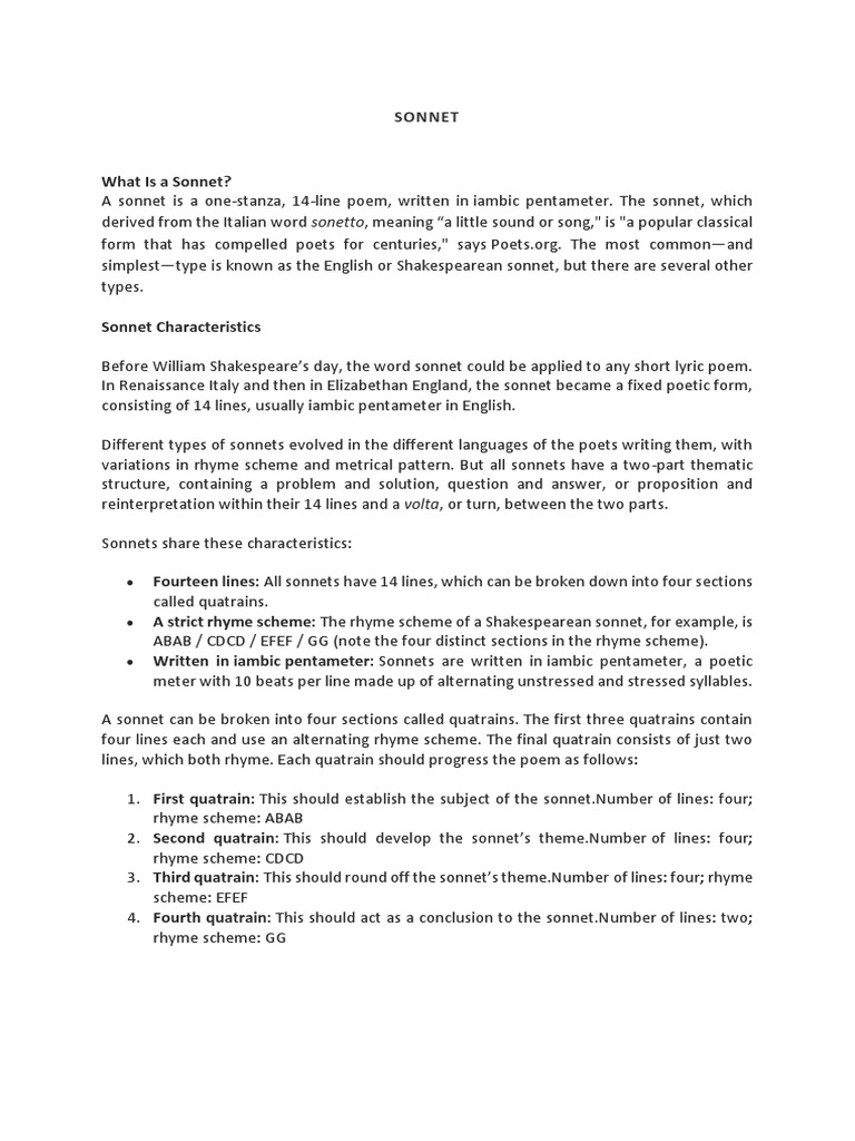 SONNET Structure Download Free PDF Sonnets Poetry