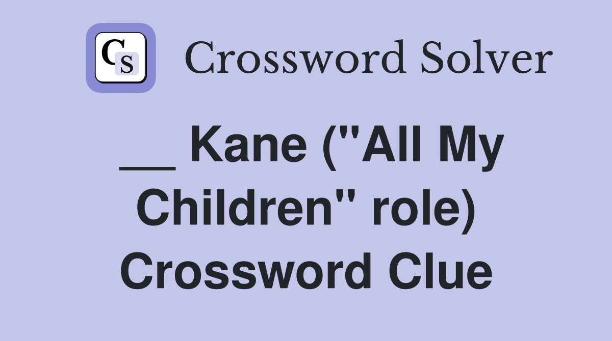 Kane ( quot All My Children quot role) Crossword Clue Answers Crossword