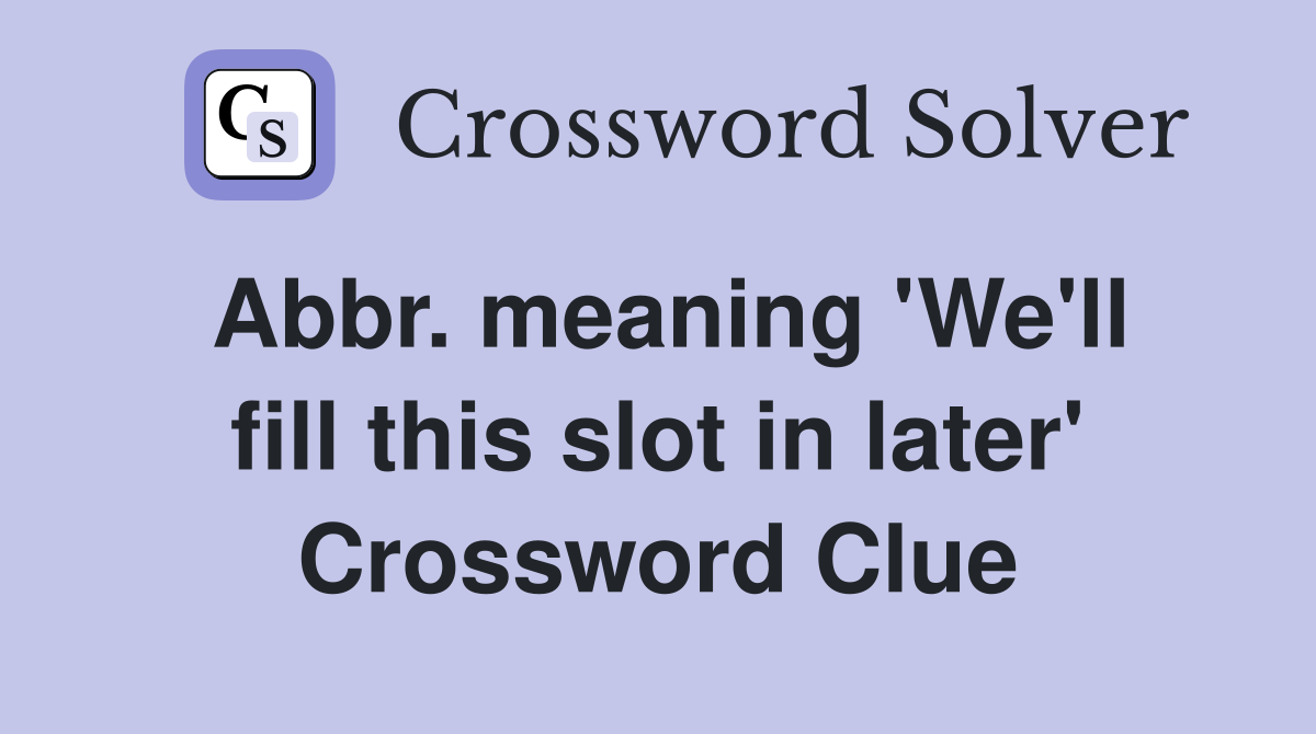 Abbr meaning #39 We #39 ll fill this slot in later #39 Crossword Clue Answers