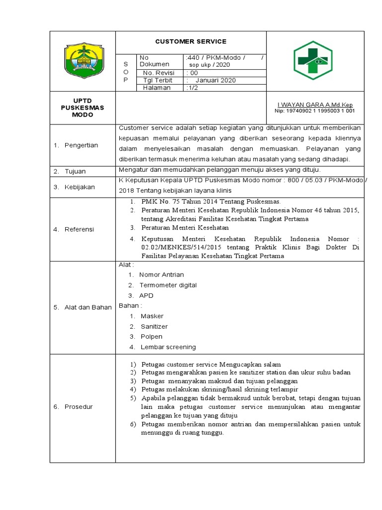 Contoh SOP Customer Service Ruang SOP