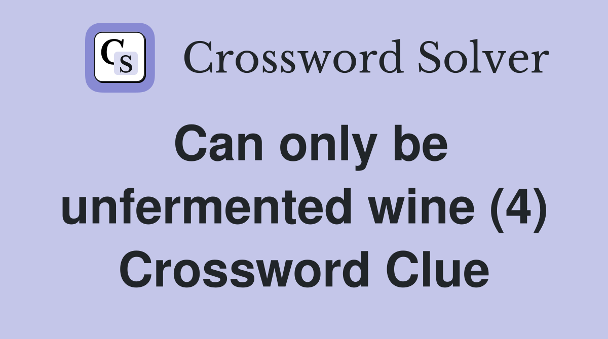 Can only be unfermented wine (4) Crossword Clue Answers Crossword