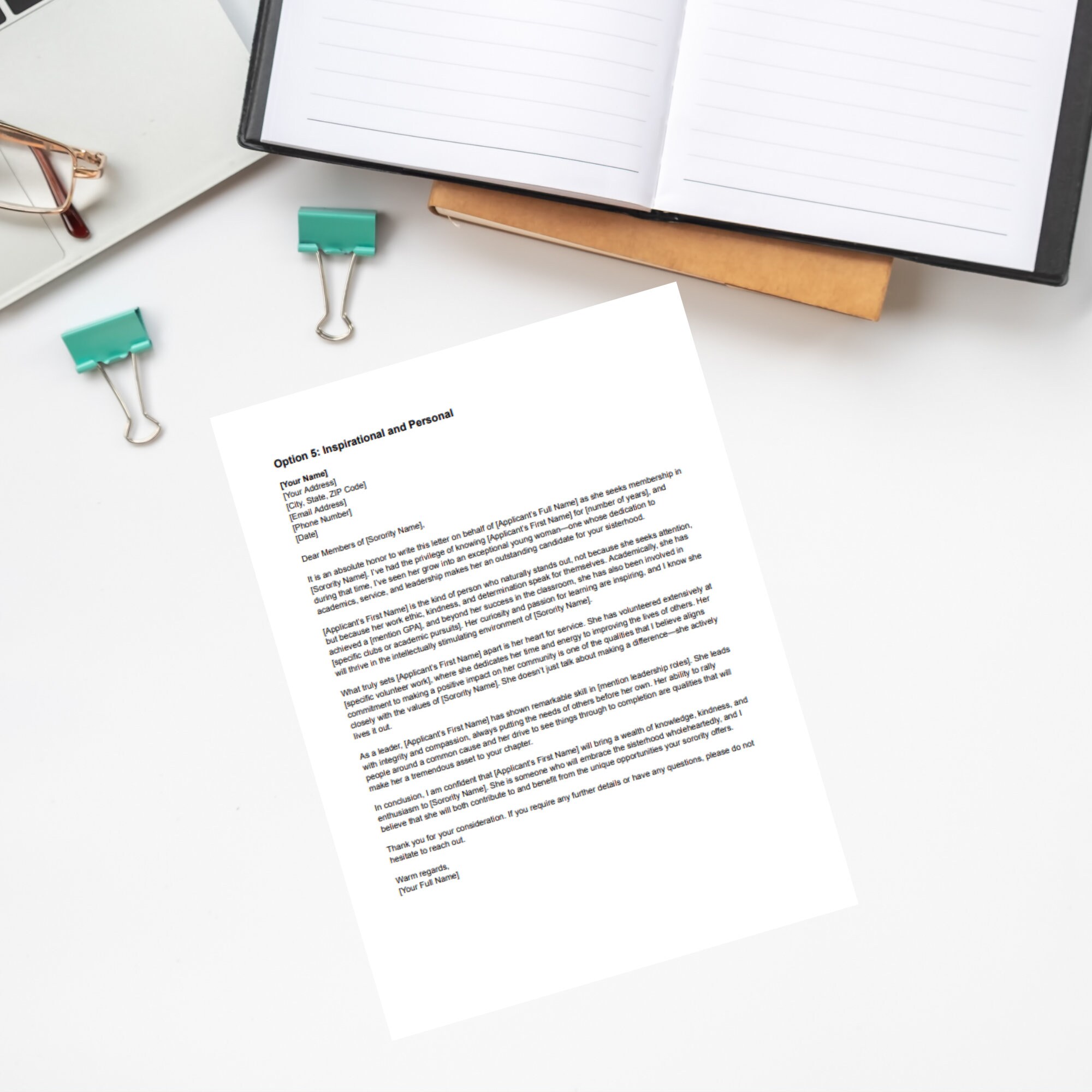 Sorority Recommendation Letter in Google Docs Pages Word Outlook