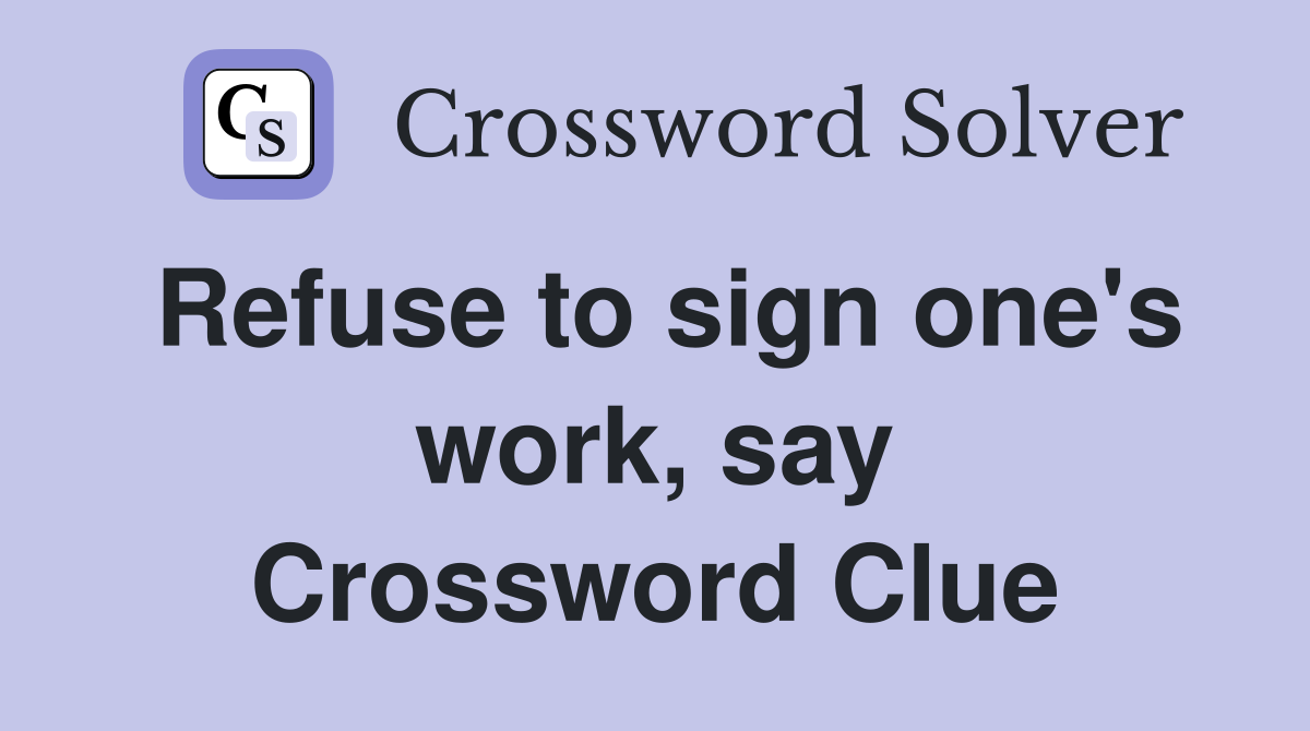 Refuse to sign one #39 s work say Crossword Clue Answers Crossword Solver