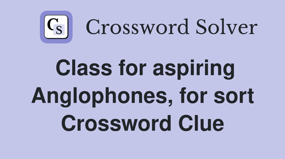 Class for aspiring Anglophones for sort Crossword Clue Answers