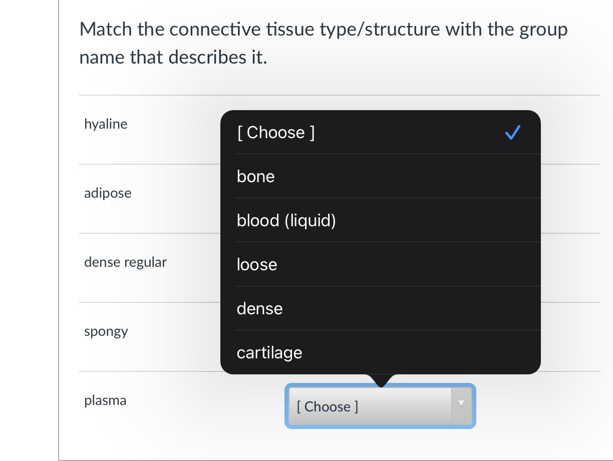 Solved Match the connective tissue type/structure with the Chegg com
