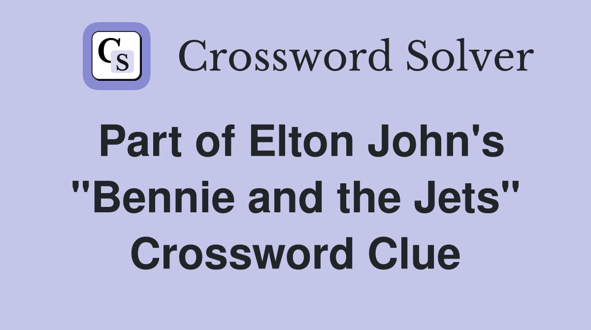 Part of Elton John #39 s quot Bennie and the Jets quot Crossword Clue Answers