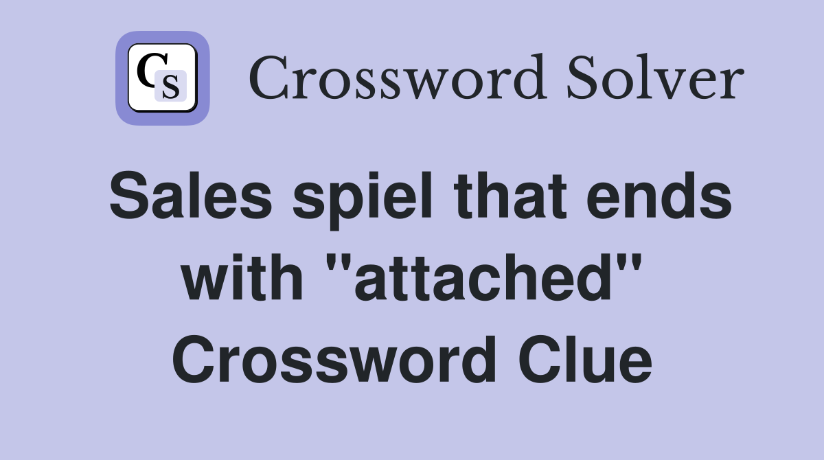 Sales spiel that ends with quot attached quot Crossword Clue Answers