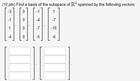 Solved (10 pts) Find a basis of the subspace of R4 spanned Chegg com