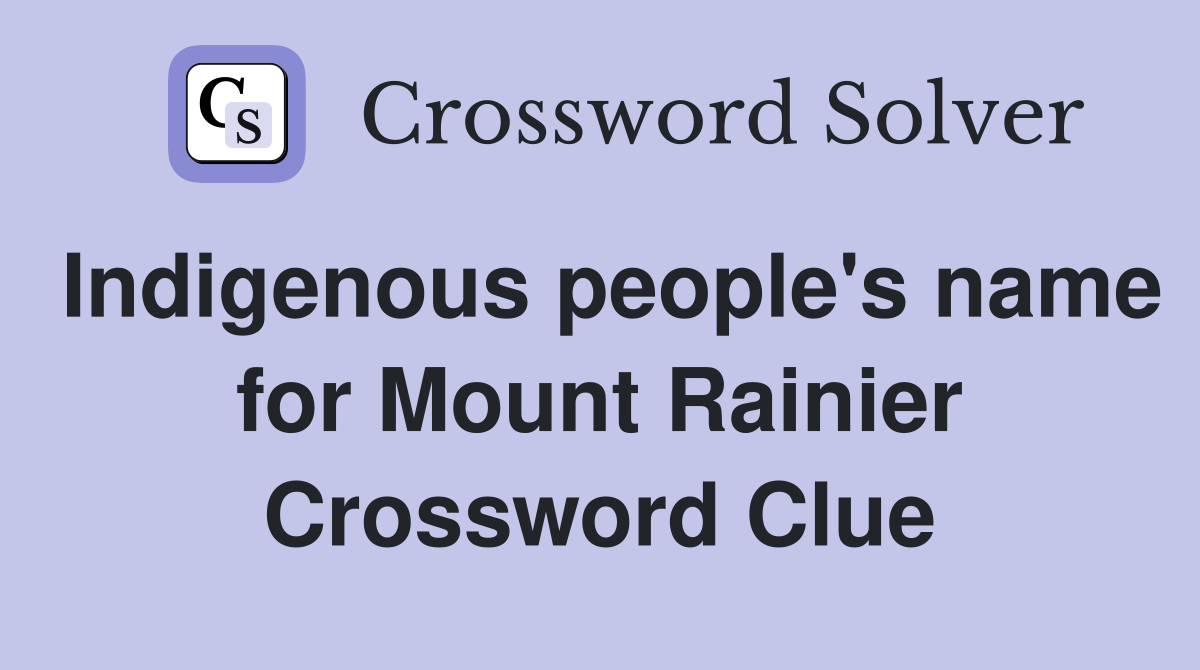 Indigenous people #39 s name for Mount Rainier Crossword Clue Answers