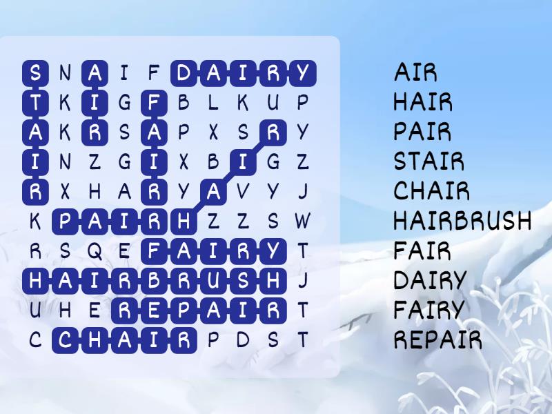 air for the /air/ sound Wordsearch