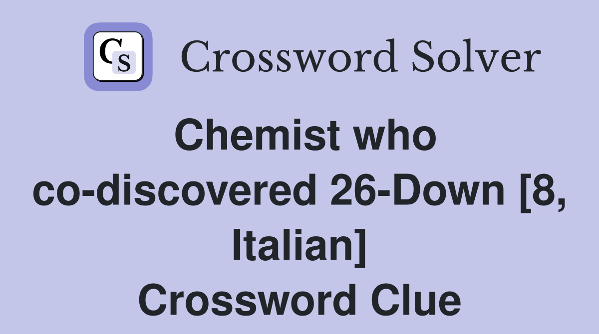Chemist who co discovered 26 Down 8 Italian Crossword Clue Answers
