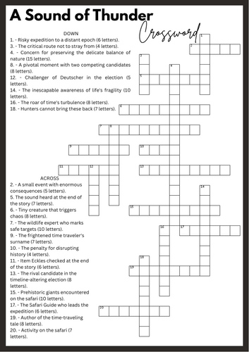 A Sound of Thunder Crossword Activity Teaching Resources