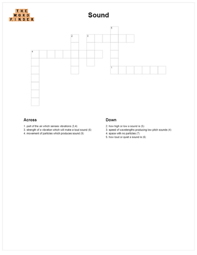 Sound Activities Crossword Puzzle and Word Search by Elementary Library