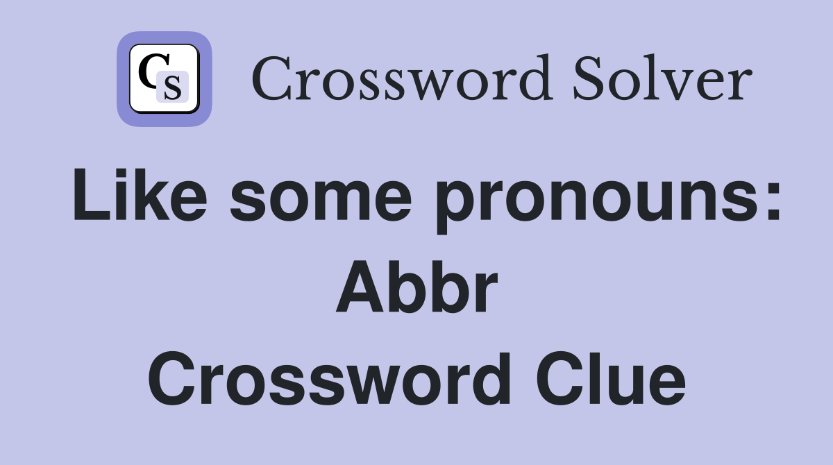 Like some pronouns: Abbr Crossword Clue Answers Crossword Solver