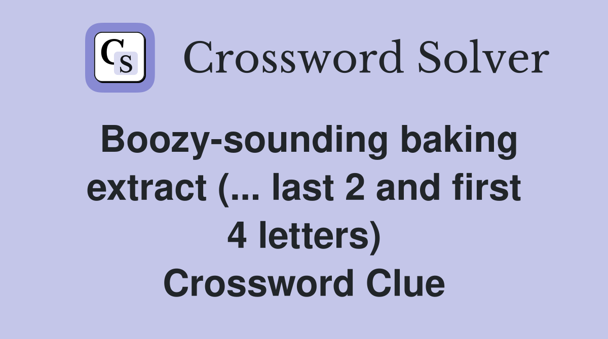 Boozy sounding baking extract ( last 2 and first 4 letters