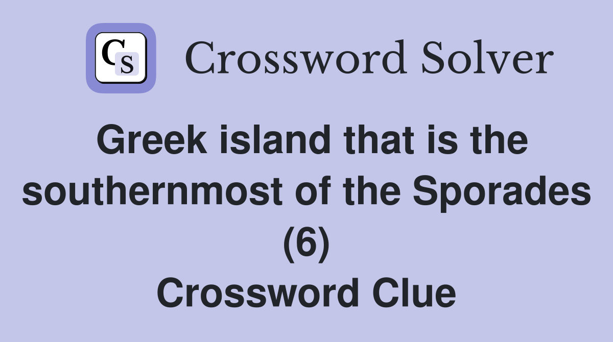 Greek island that is the southernmost of the Sporades (6) Crossword