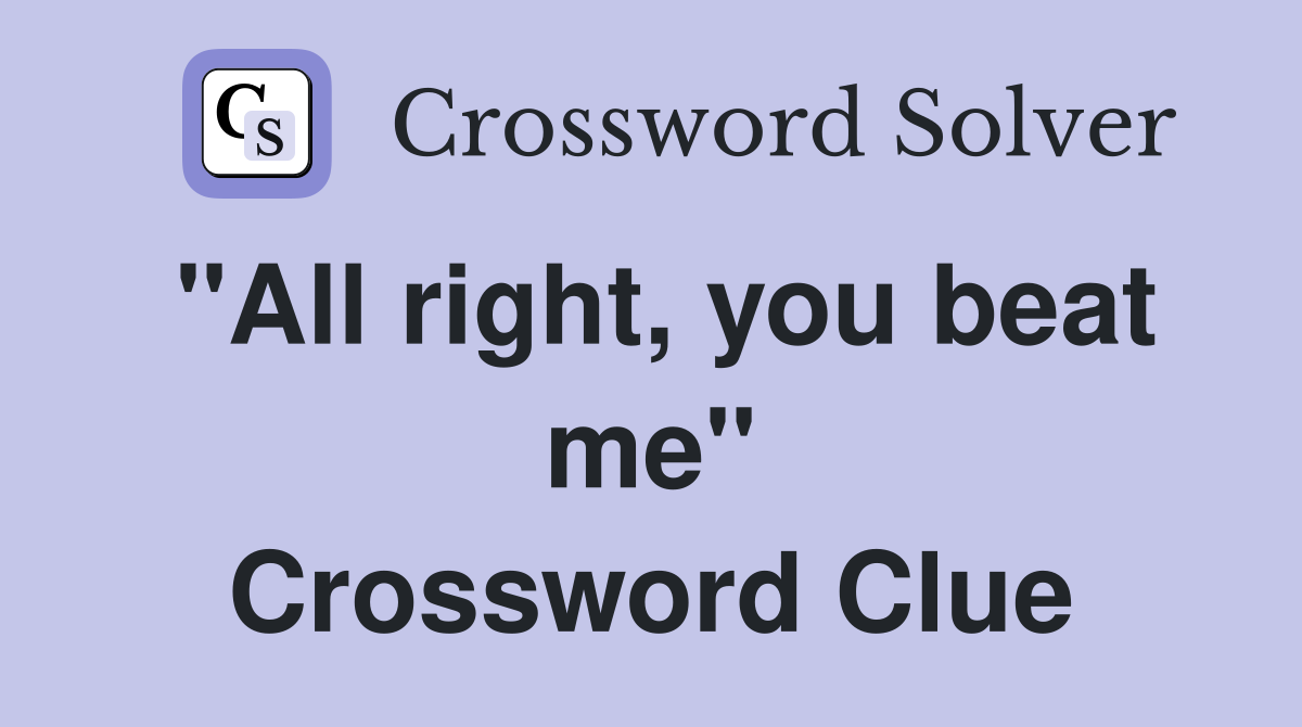 quot All right you beat me quot Crossword Clue Answers Crossword Solver
