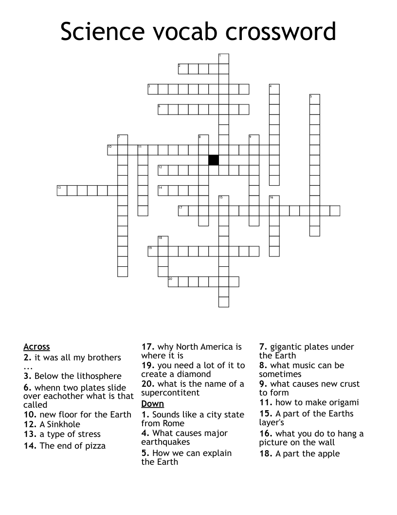 Science vocab crossword WordMint