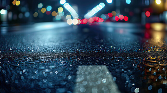Premium Photo A wet street at night with lights in the background