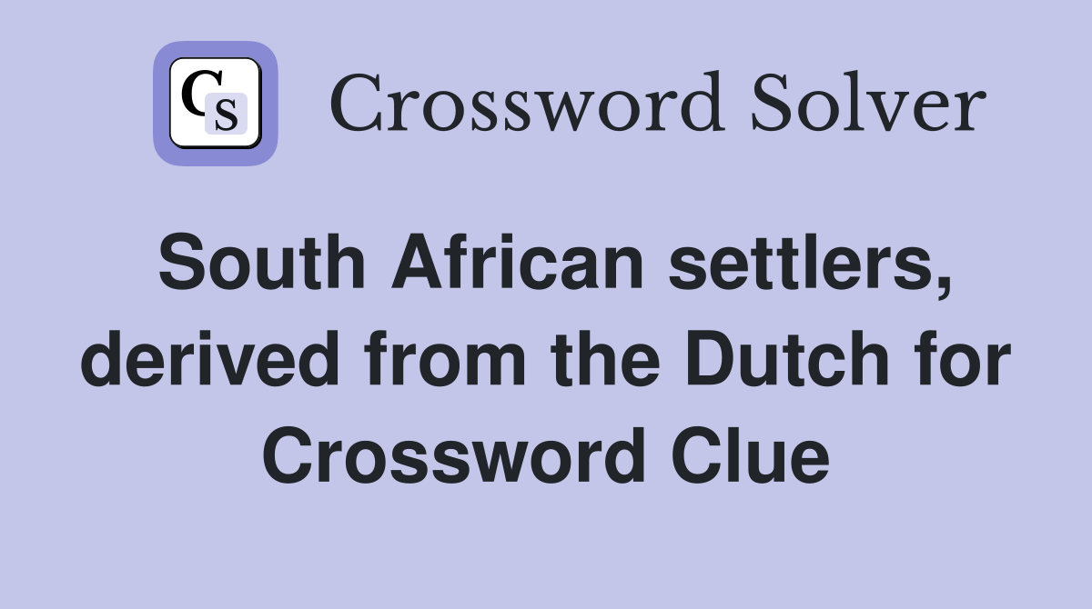 Dutch South African Crossword Clue Answers Crossword Solver