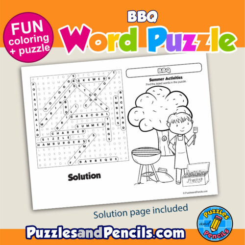 BBQ Word Search Puzzle Activity Page and Coloring Barbeque Wordsearch