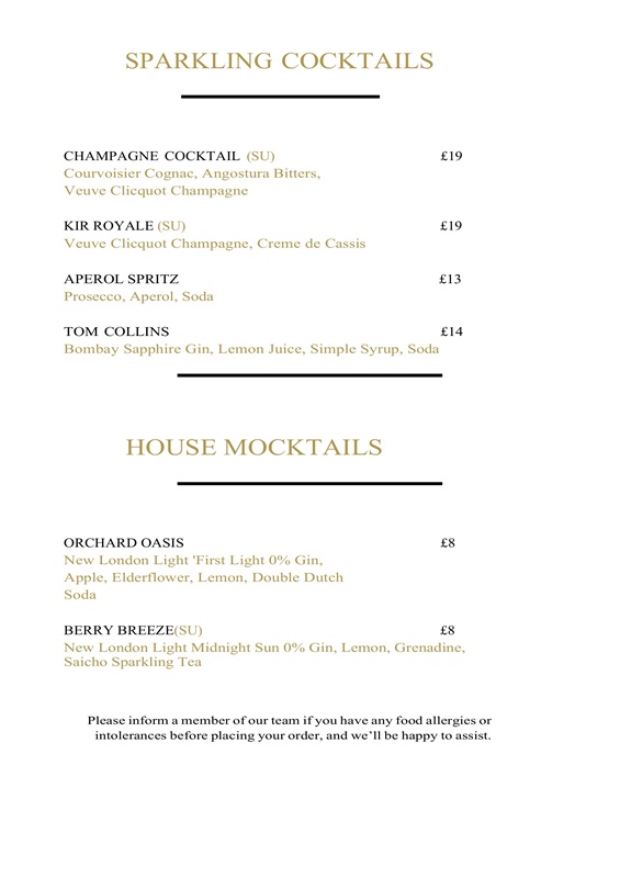 The Greenway Hotel drinks menu