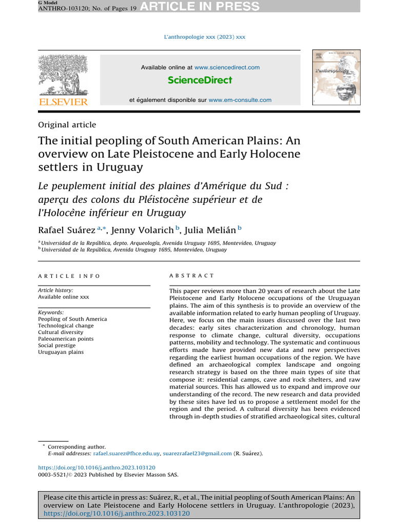 Suárez Volarich y Melián 2023 The Initial Peopling of South American