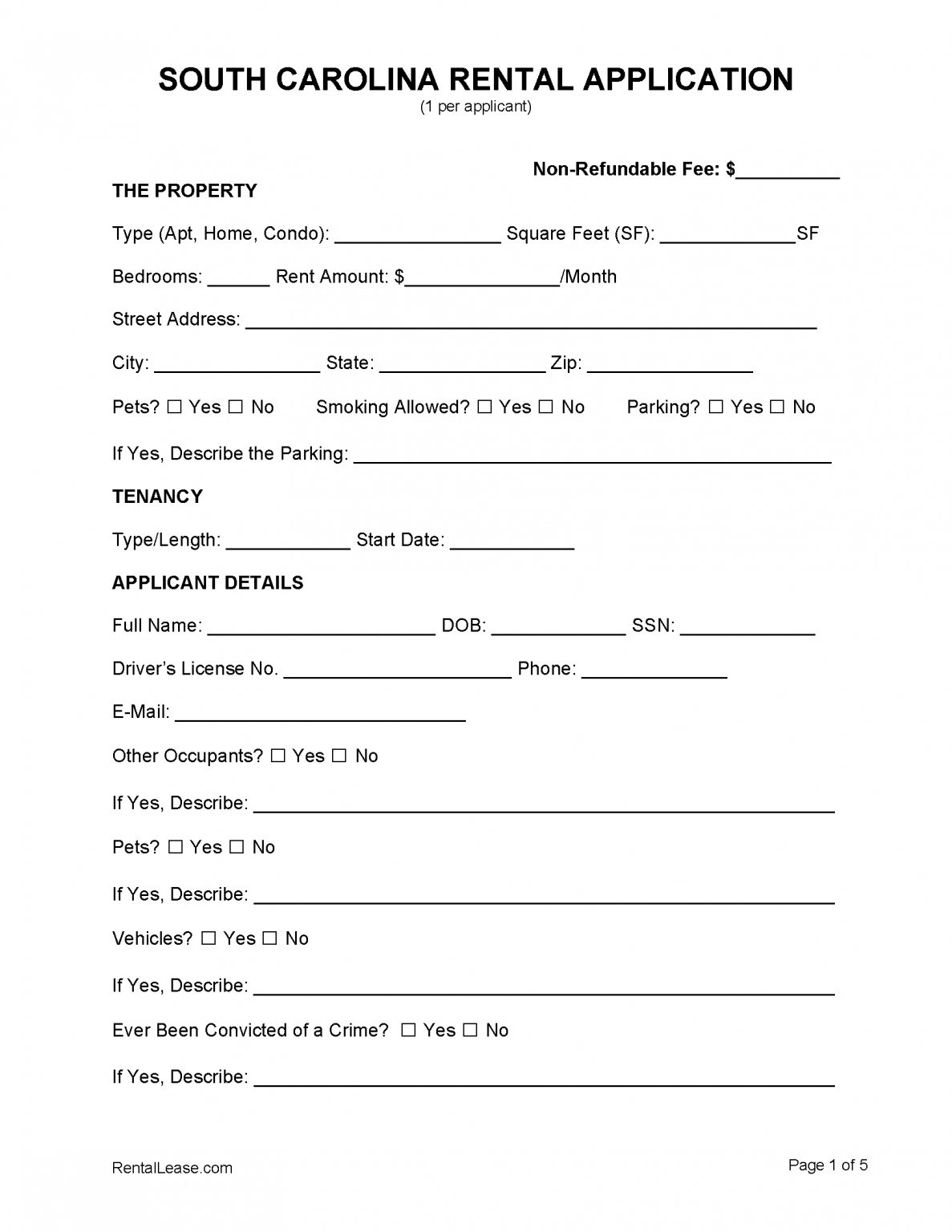 Free South Carolina Residential Lease Agreement Template ⋆ Fillable PDF