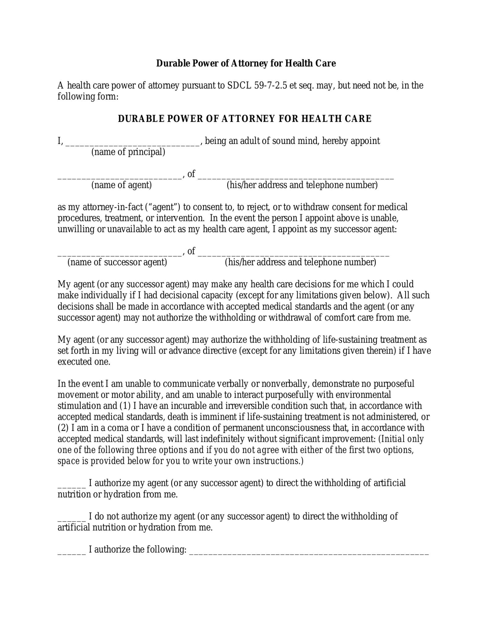 Free South Dakota Living Will Template to Edit Online