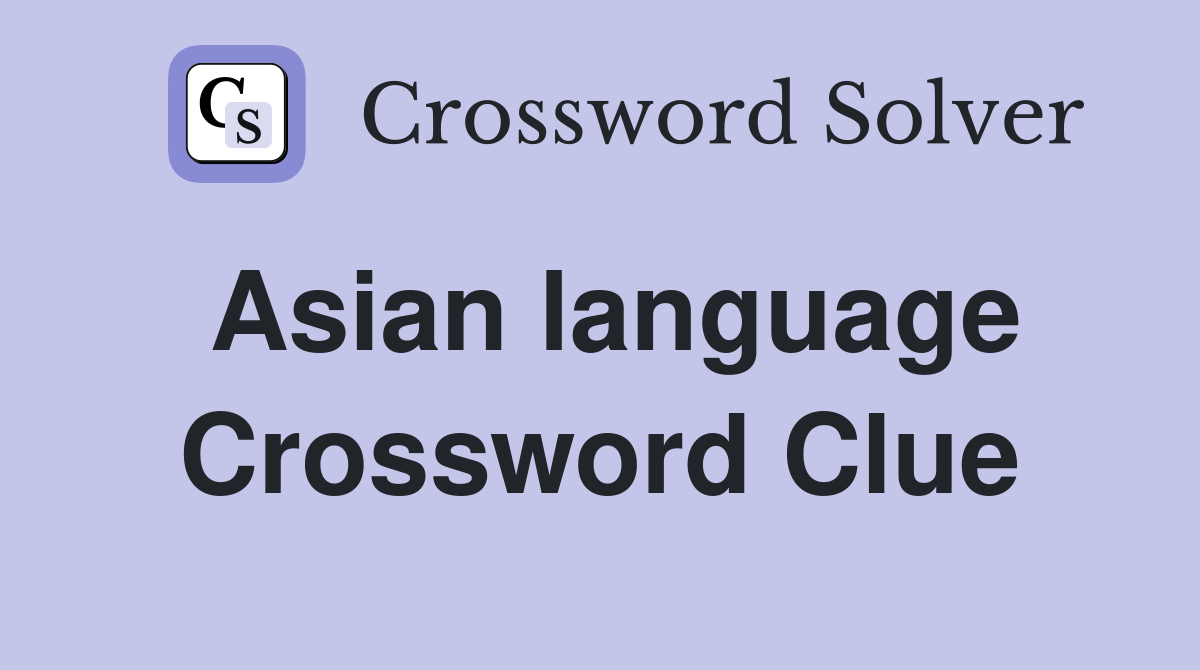 Asian language Crossword Clue Answers Crossword Solver