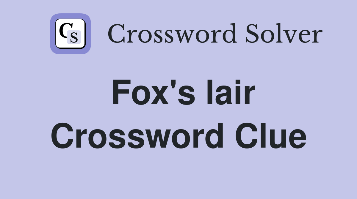 Fox #39 s lair Crossword Clue Answers Crossword Solver