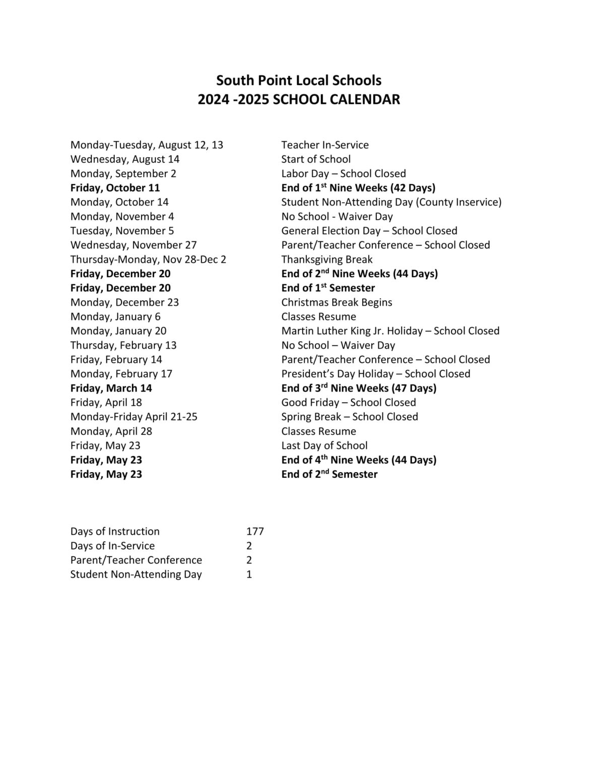 South Point Local School District Calendar 25 26 Revised PDF EduCounty