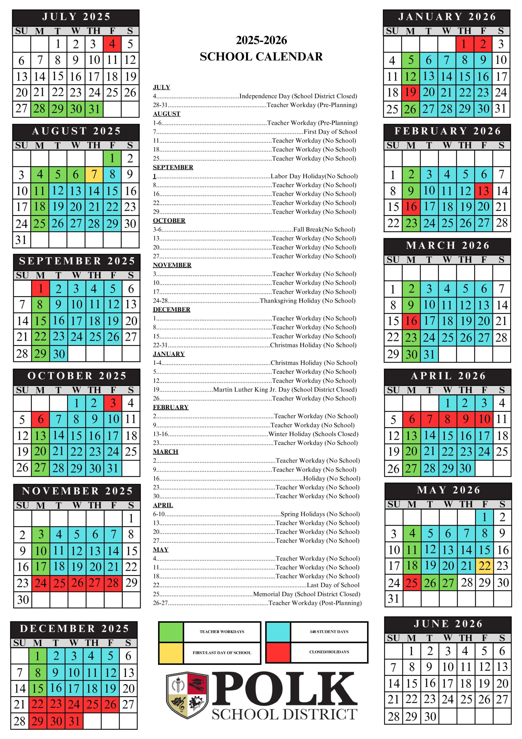 Polk County Schools Calendar 2025 2026 in PDF School Calendar Info