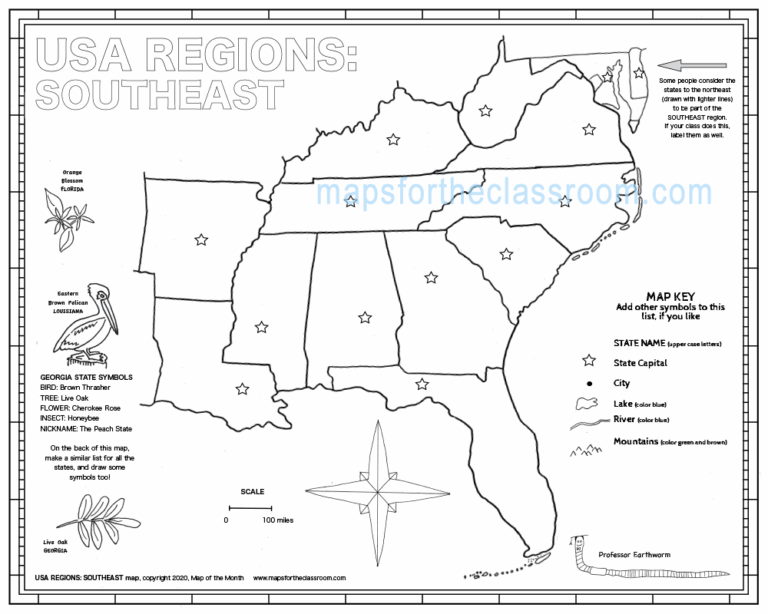 Southeast Region States Map Printable