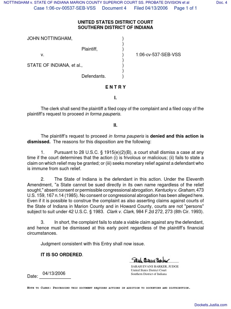 Us District Court Southern District Of Indiana prntbl