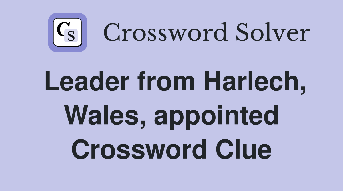 Leader from Harlech Wales appointed Crossword Clue Answers