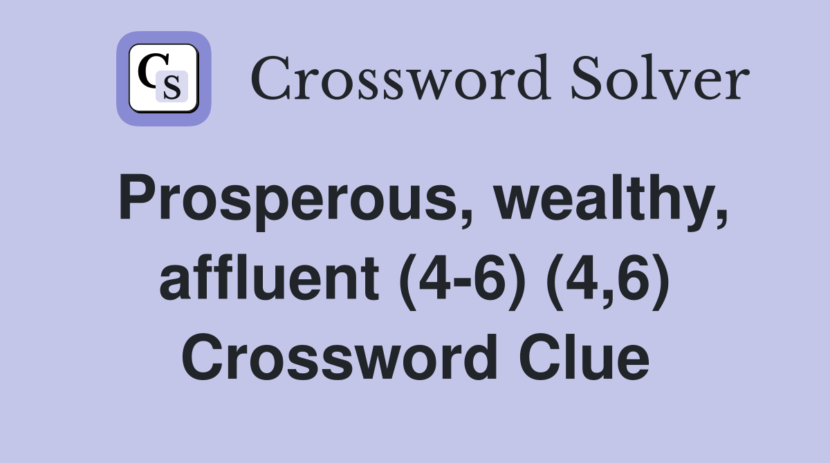 Prosperous wealthy affluent (4 6) (4 6) Crossword Clue Answers