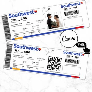 Editable Southwest Travel Ticket Template Custom Airline Ticket Gift