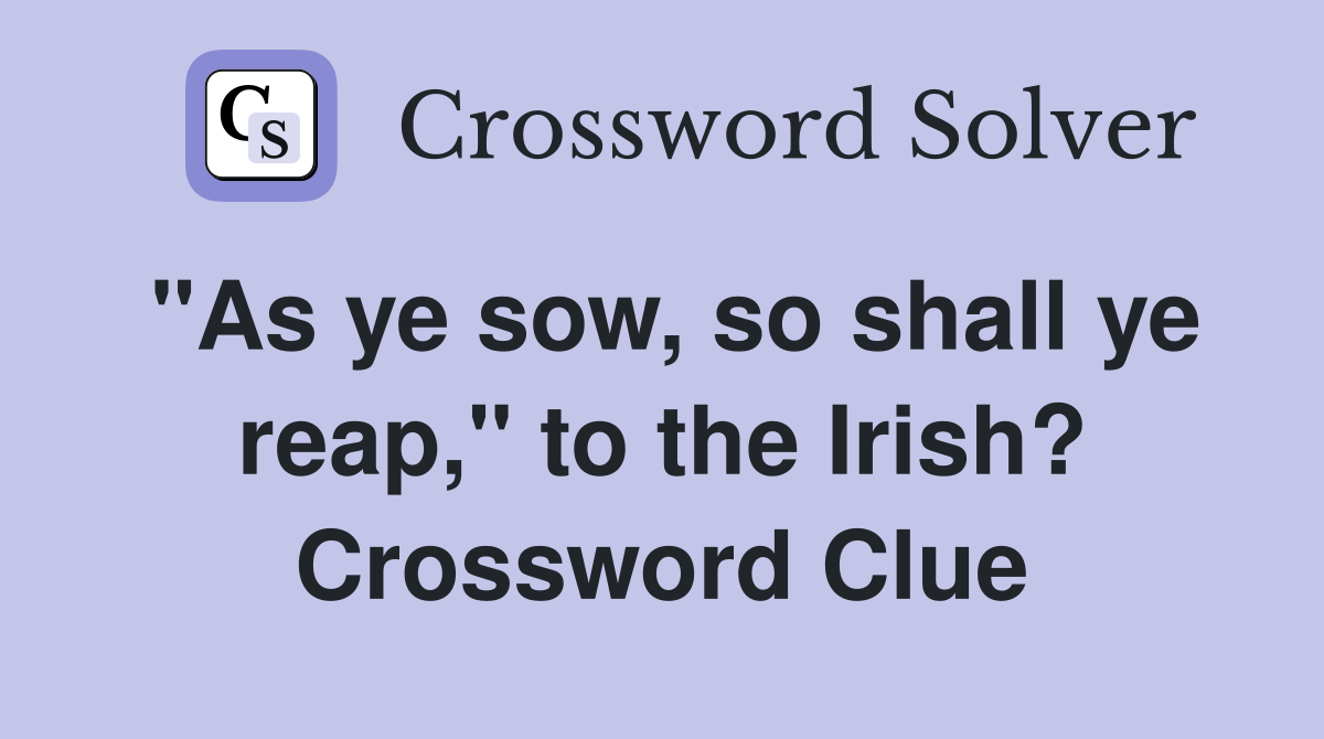 quot As ye sow so shall ye reap quot to the Irish? Crossword Clue Answers