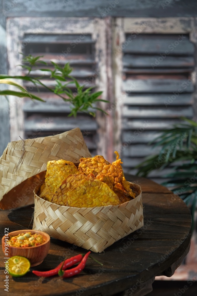 Fried tempeh or soybean cake a side dish commonly served with sambal