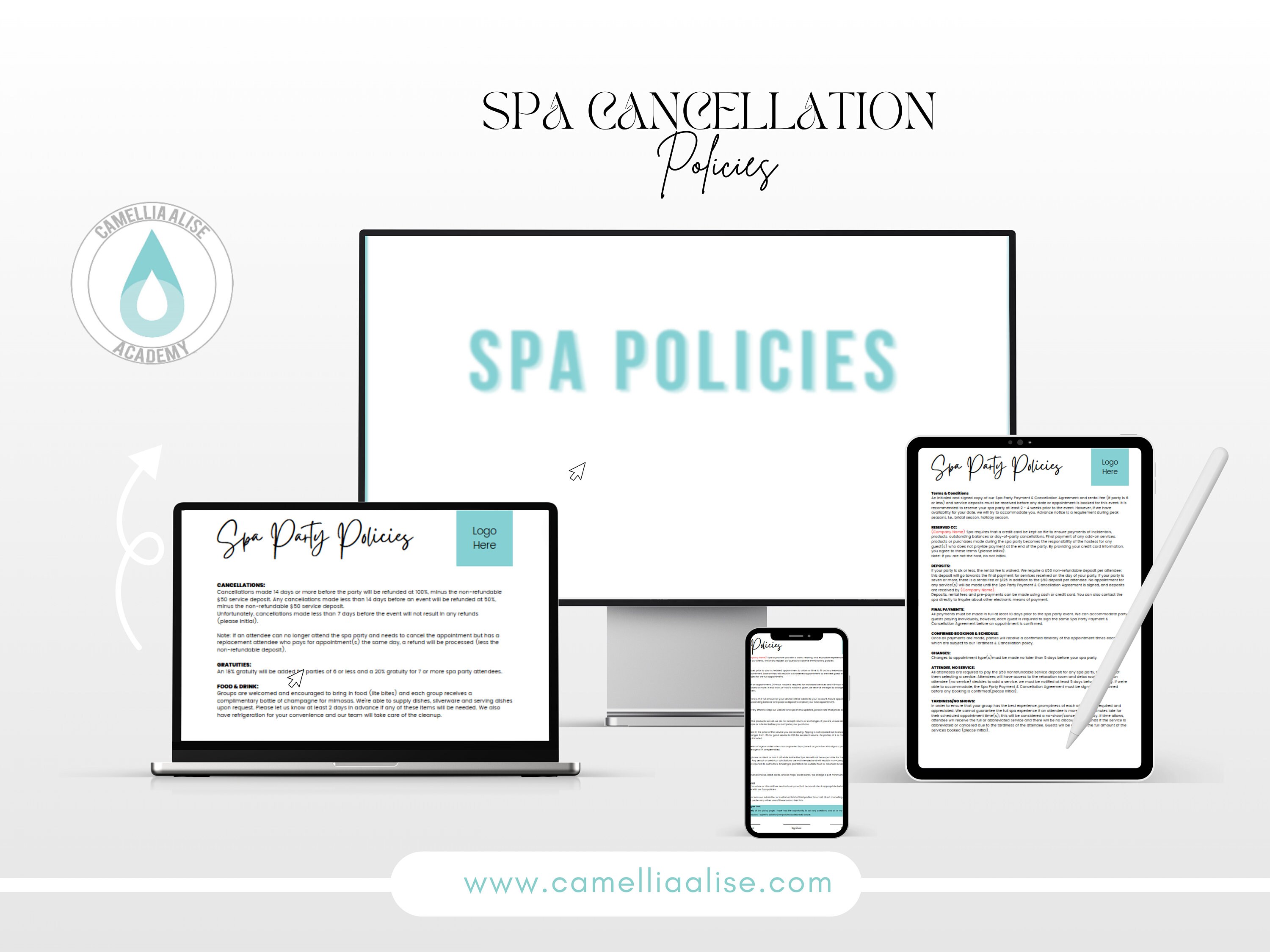 Spa Cancellation Policy Template Editable Spa Policy Etsy UK