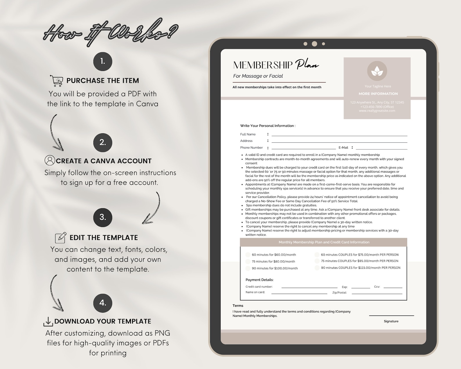 Editable Spa Membership Template Membership Plan for Massage Pre made