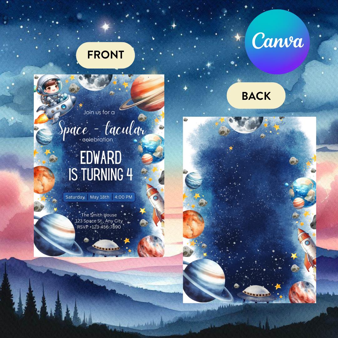 Free printable customizable space invitation templates Canva