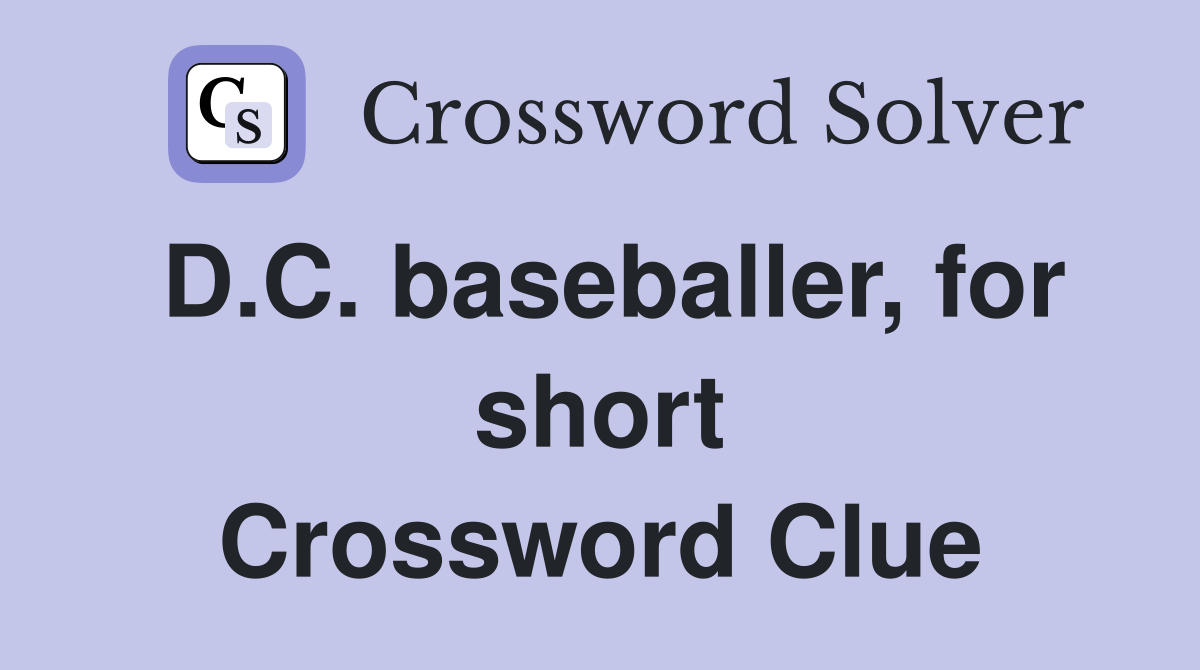 D C baseballer for short Crossword Clue Answers Crossword Solver