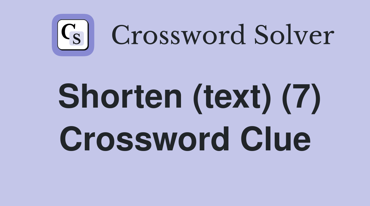 Shorten (text) (7) Crossword Clue Answers Crossword Solver
