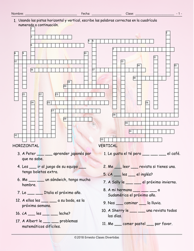 Like versus Would Like Spanish Crossword Puzzle Teaching Resources