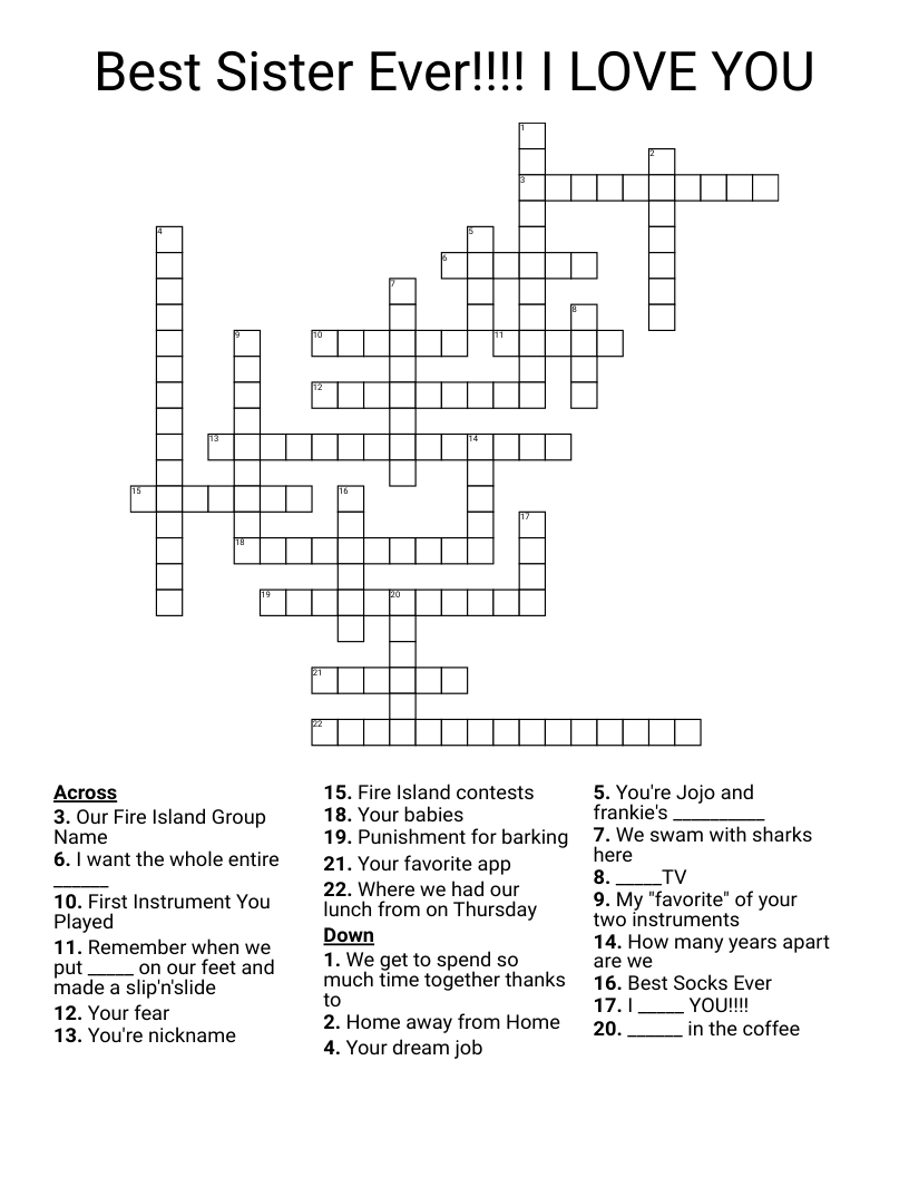Best Sister Ever I LOVE YOU Crossword WordMint