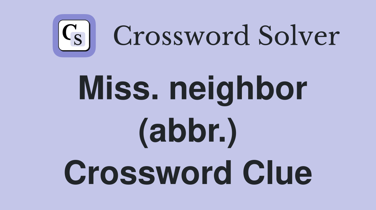 Miss neighbor (abbr ) Crossword Clue Answers Crossword Solver