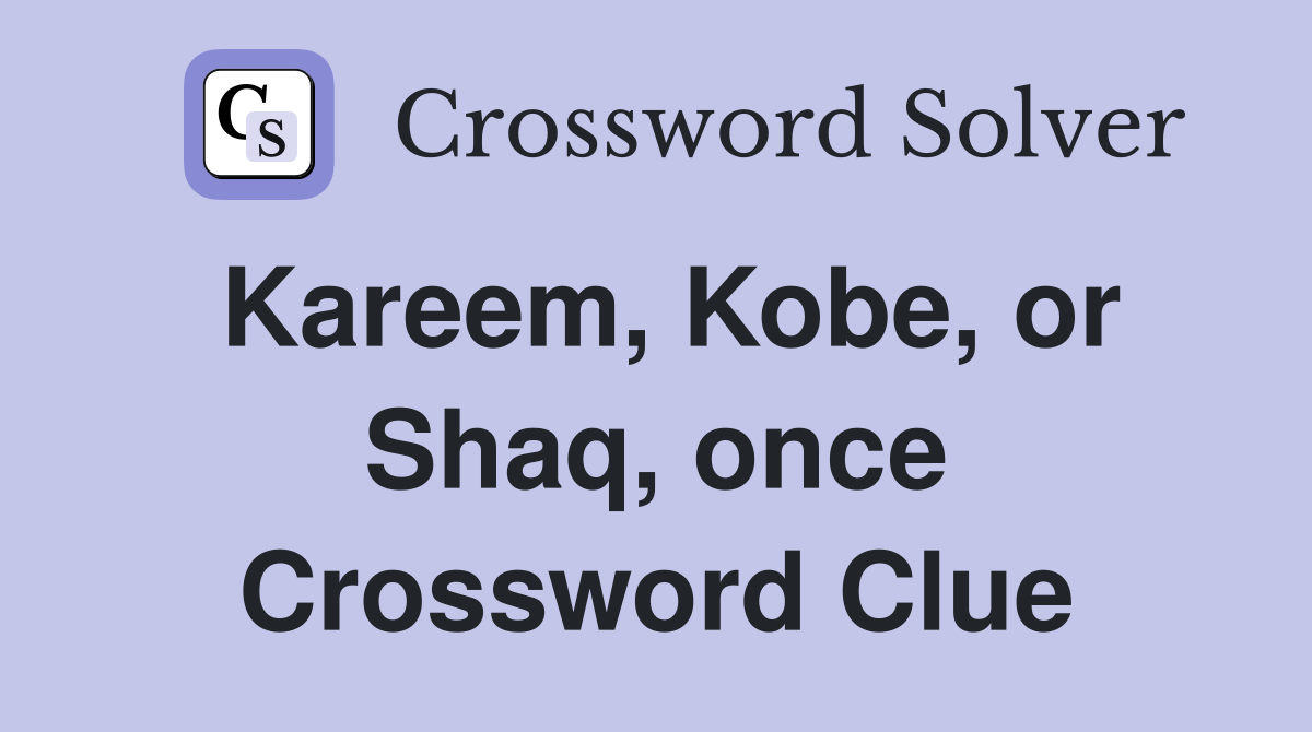 Kareem Kobe or Shaq once Crossword Clue Answers Crossword Solver